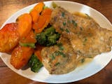 With dijon mustard or teriyaki sauce. Served with roasted potatoes and sauteed veggies.